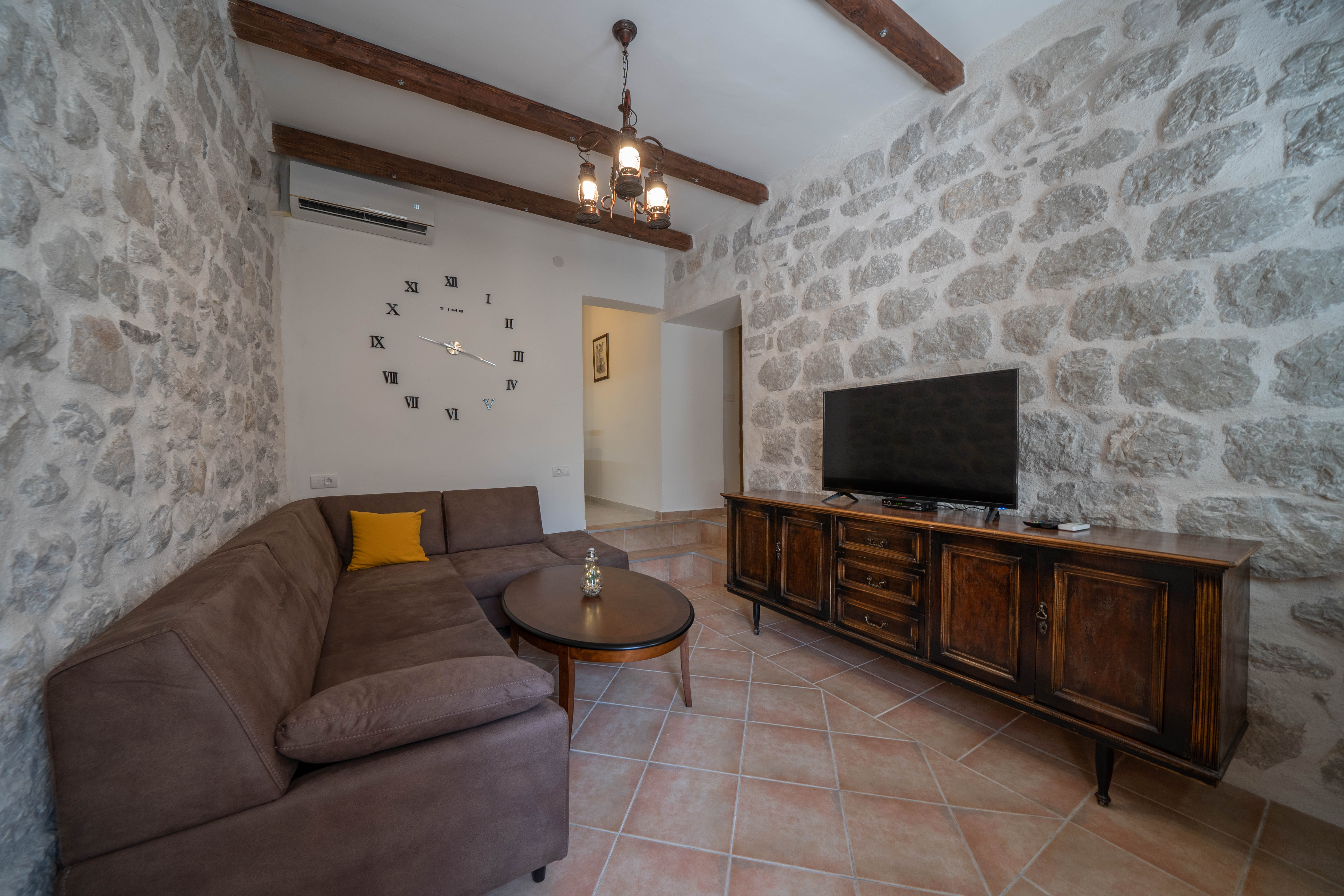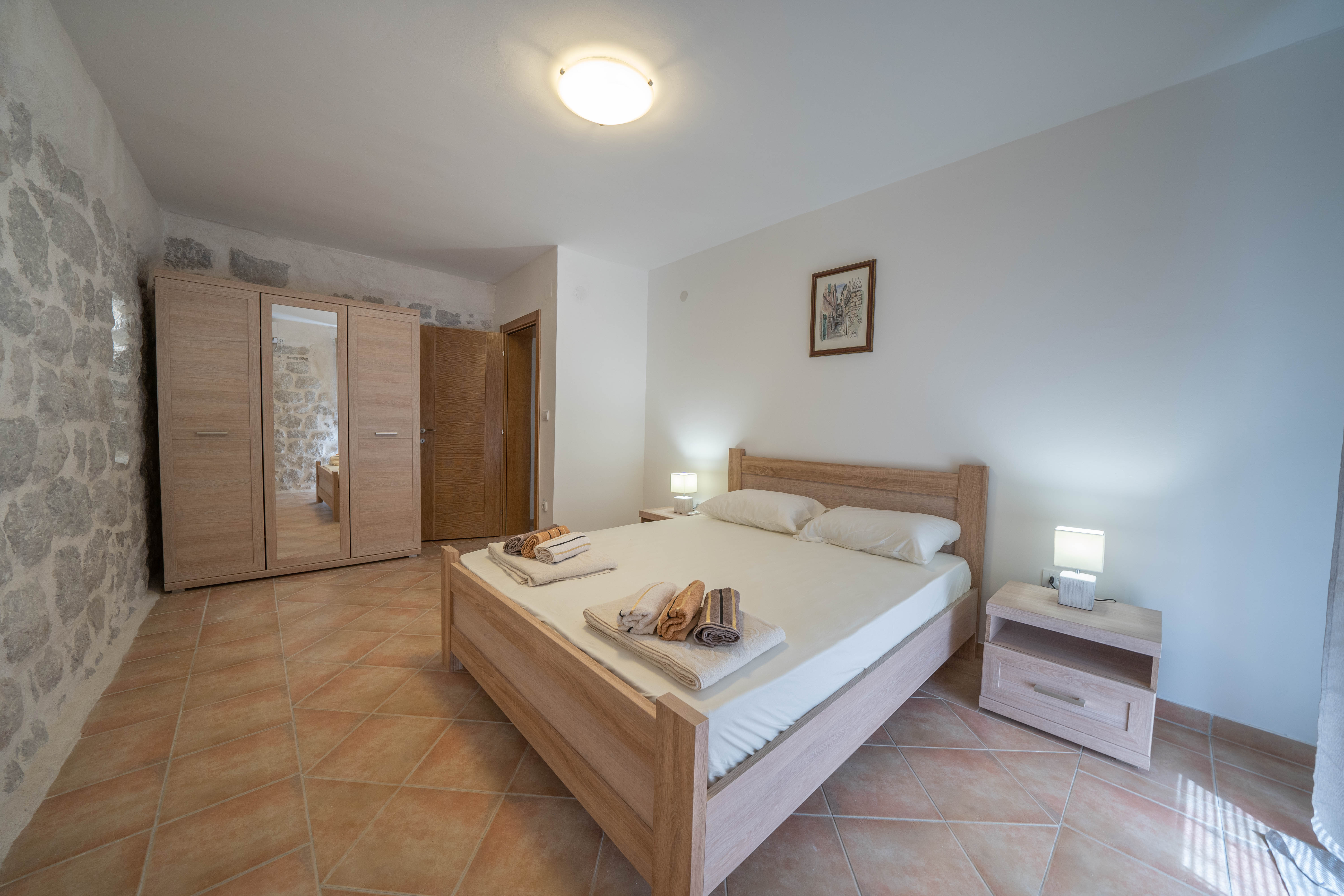 Kamena kuca sa 5 apartmana se nalazi u Lipcima, 100m od mora, okruzena bujnim zelenilom, sa slobodanim parkingom, svi apartmani imaju zaseban ulaz, terasu sa rostiljem. Potpuno renovirana kamena kuca iz 18 vijeka, kompletno opremljena svim neophodnim stvarima za uzivanje.